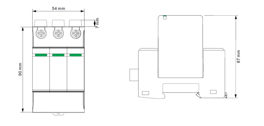 Urządzenie wykonano w technologii iskiernikowo–warystorowej (MOV + GDT + MOV). Warystory (MOV) zastosowane w modułach DC+ i DC- oraz iskiernik gazowy (GDT) w module PE eliminują problem starzenia się elementów pod wpływem prądu upływu i roboczego, gwarantując wysoką trwałość i niezawodność.