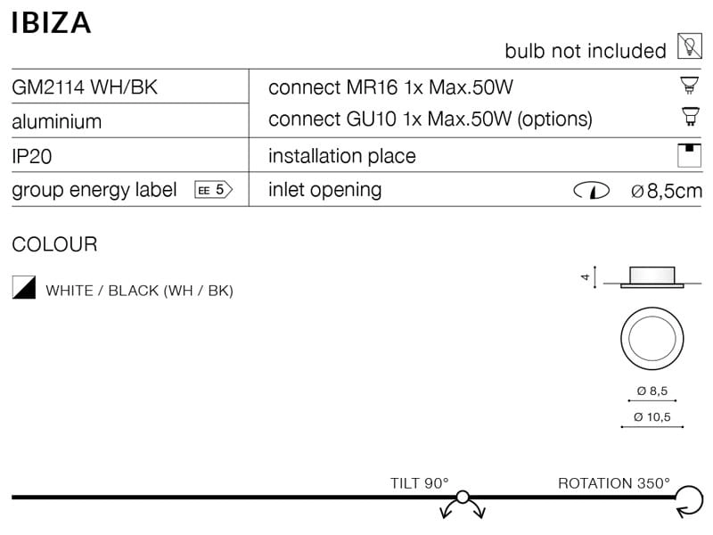 Lampa wpuszczana Ibiza White/Black AZ1361