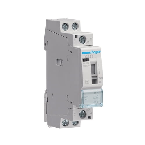Modułowy stycznik instalacyjny 25A z jednym stykiem NO (1NO) przeznaczony do sterowania obwodami w instalacjach elektrycznych 230V AC. Urządzenie wyposażone jest w ręczny przełącznik oraz przystosowane do montażu na szynie DIN (1 moduł – 17,85 mm szerokości).