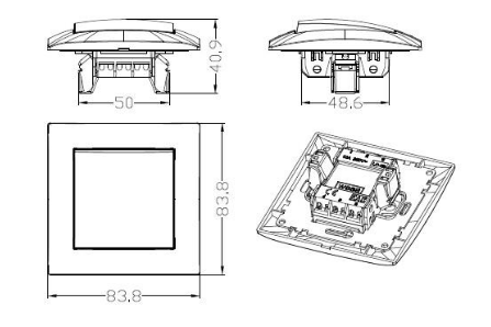 Montaż: podtynkowy, puszka Ø 60 mm, wkręty/pazurki
