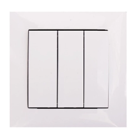 Łącznik instalacyjny potrójny– wyposażony jest w potrójny przycisk, dokonuje łączenia w obrębie potrójnego obwodu, działa na zasadzie przełącznika (sprężyna nie odbija z powrotem po puszczeniu przycisku).