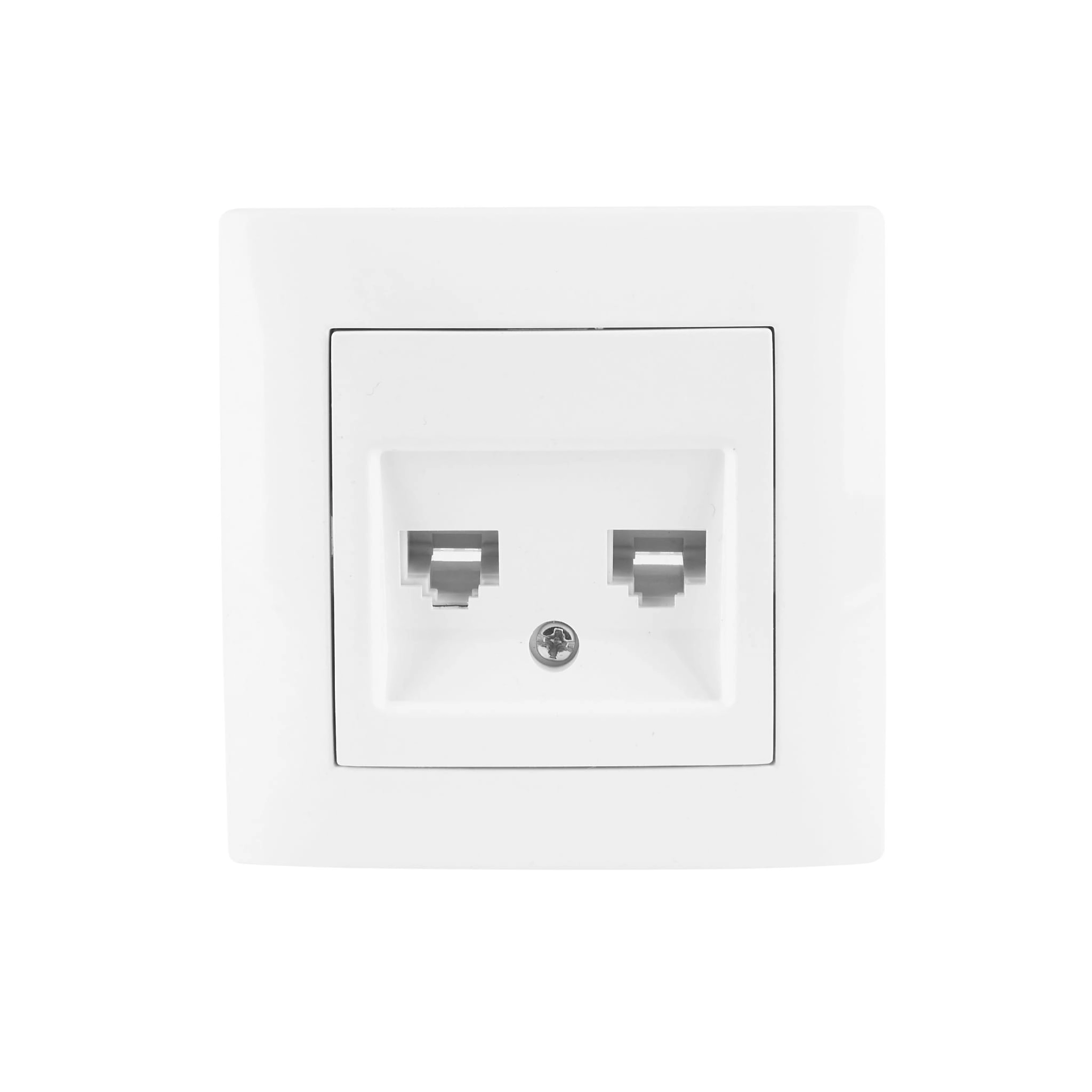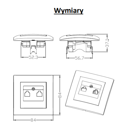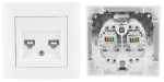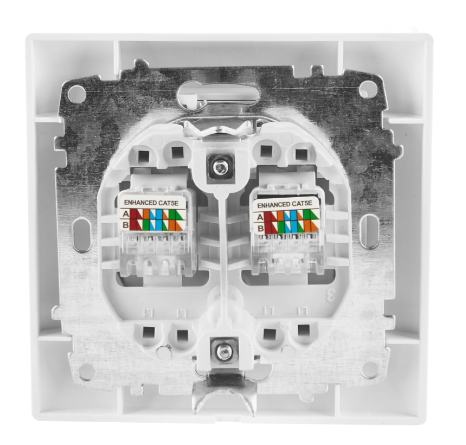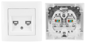 Gniazdo komputerowe podwójne– wyposażone w dwa łącza RJ45 przeznaczone do podłączenia dwóch kabli sygnałowych kategorii 5e,nieekranowane (UTP) typu skrętka.