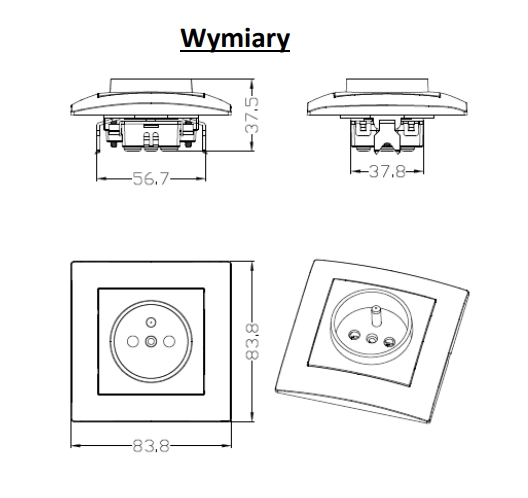 • Gniazdo nie przystosowane do montażu w systemie ramkowym