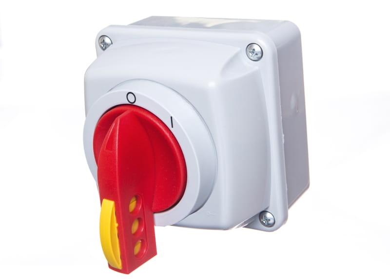 Łącznik krzywkowy w obudowie marki Elektromet Dzierżoniów.