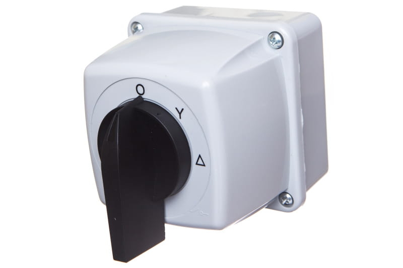 Łącznik krzywkowy typu gwiazda-trójkąt w obudowie marki Elektromet Dzierżoniów.