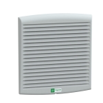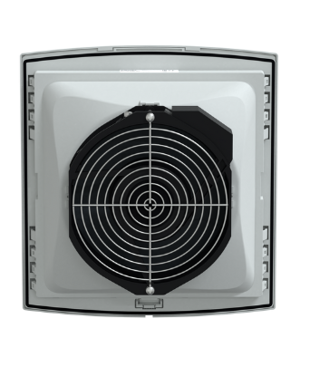Wentylator z silnikiem osiowym 230V 50Hz lub 60Hz. Swobodny przepływ ze standardowym filtrem 300 m3/h przy 50 Hz i 350 m3/h przy 60 Hz. Wymiary wycięcia wynoszą 223 x 223 mm. Kratka wylotowa z wtryskiwanego tworzywa termoplastycznego (ASA PC), szary RAL 7035. Zaciski przyłączeniowe za pomocą szybkozłącza. Posiada 2 kratki ochronne na przedniej i tylnej powierzchni. Stopień ochrony IP54.