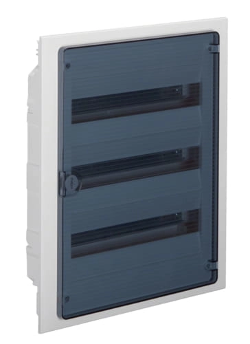 Rozdzielnica VF318TD jest to rozdzielnica podtynkowa transparentna posiadająca 3 rzędy na 18 modułów. Tego rodzaju rozdzielnice najczęściej stosowane są do mieszkań, domów lub innych obiektów.