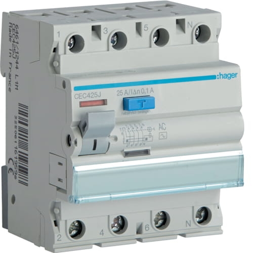 Wyłącznik różnicowoprądowy CEC225J, potocznie różnicówka (RCB) jest stosowana jako ochrona dodatkowa w układach sieci TN-S, TT. Służy do ochrony ludzi i ogranicza skutki uszkodzenia urządzeń, w tym możliwość powstania pożaru. Wyłącznik różnicowoprądowy CEC425J montuje się w instalacjach trójfazowych.