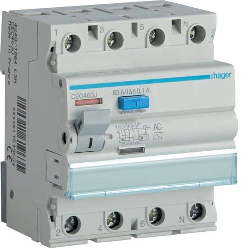 Wyłącznik różnicowoprądowy 4P AC 63A 100mA CEC463J